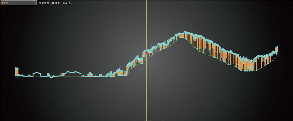 レーザードローンで得られた点群データは、様々な図面へと変化させることができます。