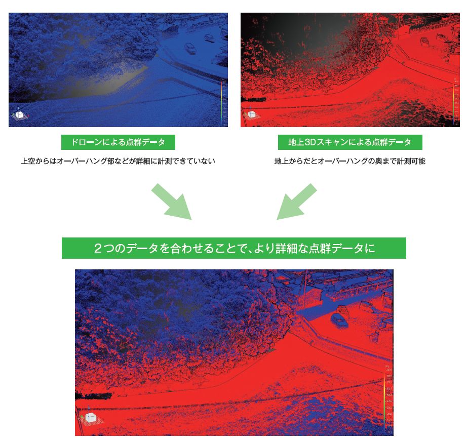 オーバーハングの下や建物内など、地上も細部までつぶさにデータ化。